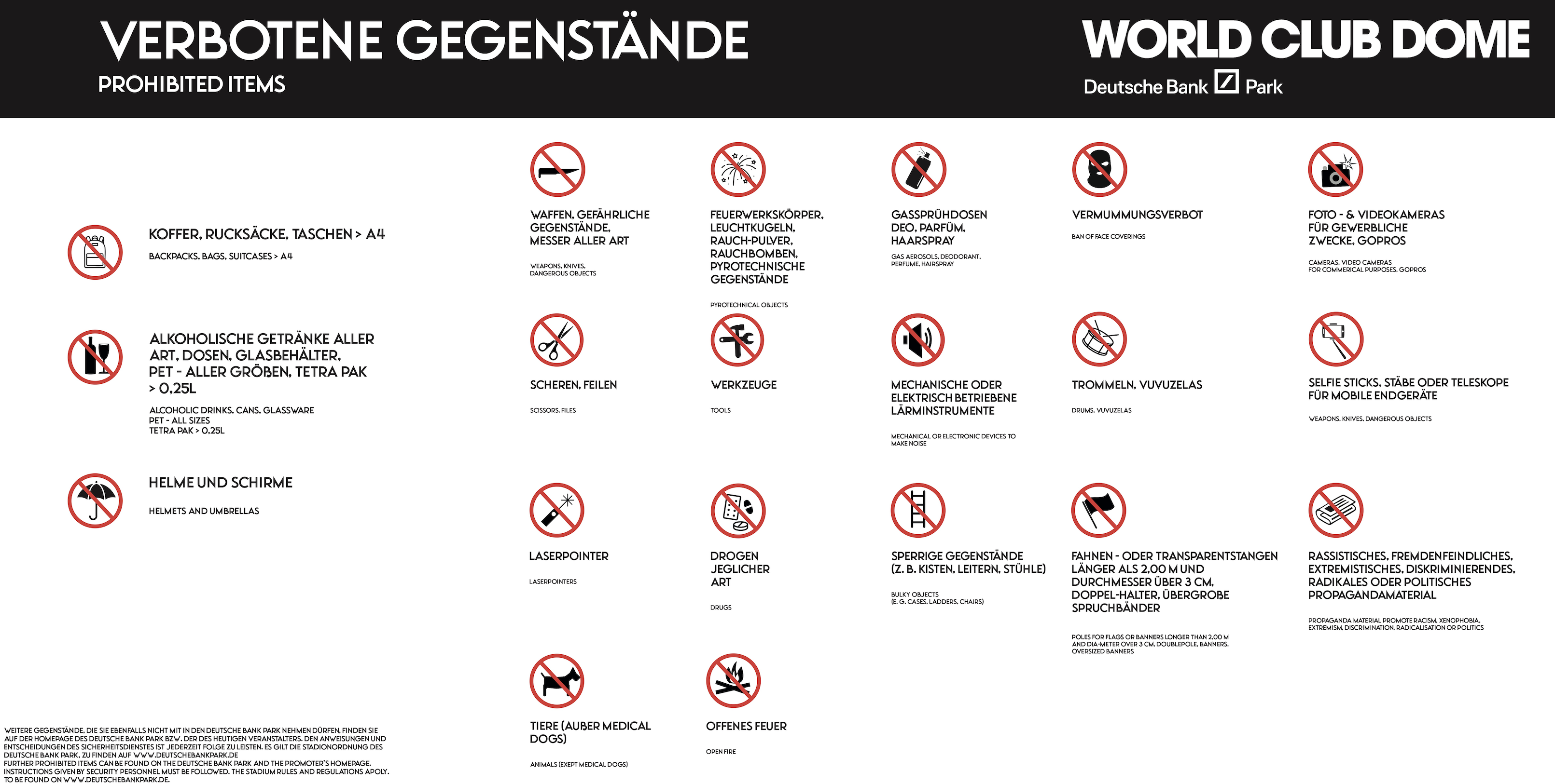 Strict security regulations apply when entering Deutsche Bank Park. Please note the following: